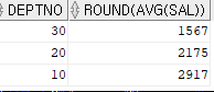 select deptno, round(avg(sal))