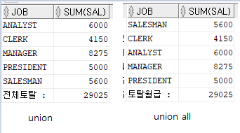 합집합 연산자 : union, union all