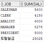 예제)직업, 직업별 토탈 월급과 맨 밑에 전체 토탈 월급을 출력하시오