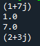복소수는 실수부와 허수부로 되어있고 허수부는 숫자뒤에 문자 i를 이용하는데 파이썬에서는 j로 사용한다.