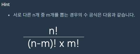 파이썬 답게 math 라이브러리에 있는 combination을 이용한 코드