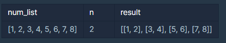 정수 배열 num_list와 정수 n이 매개변수로 주어집니다. num_list를 다음 설명과 같이 2차원 배열로 바꿔 return하도록 solution 함수를 완성해주세요.