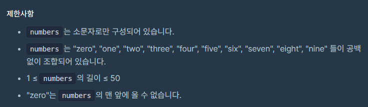 영어가 싫은 머쓱이는 영어로 표기되어있는 숫자를 수로 바꾸려고 합니다. 문자열 numbers가 매개변수로 주어질 때, numbers를 정수로 바꿔 return 하도록 solution 함수를 완성해 주세요.