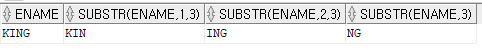 substr(ename, 3) : KING이름 3번째 철자부터 끝까지 출력