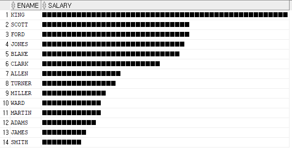 lpad('■', sal/100, '■') -> 월급이 3000이면 100으로 나누면 30. 전체가 30자리.