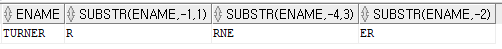 select ename, substr(ename, -1,1), substr(ename, -4,3), substr(ename, -2)