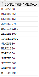 10. concat 함수 - 두개의 컬럼의 데이터를 붙여서 출력하는 함수